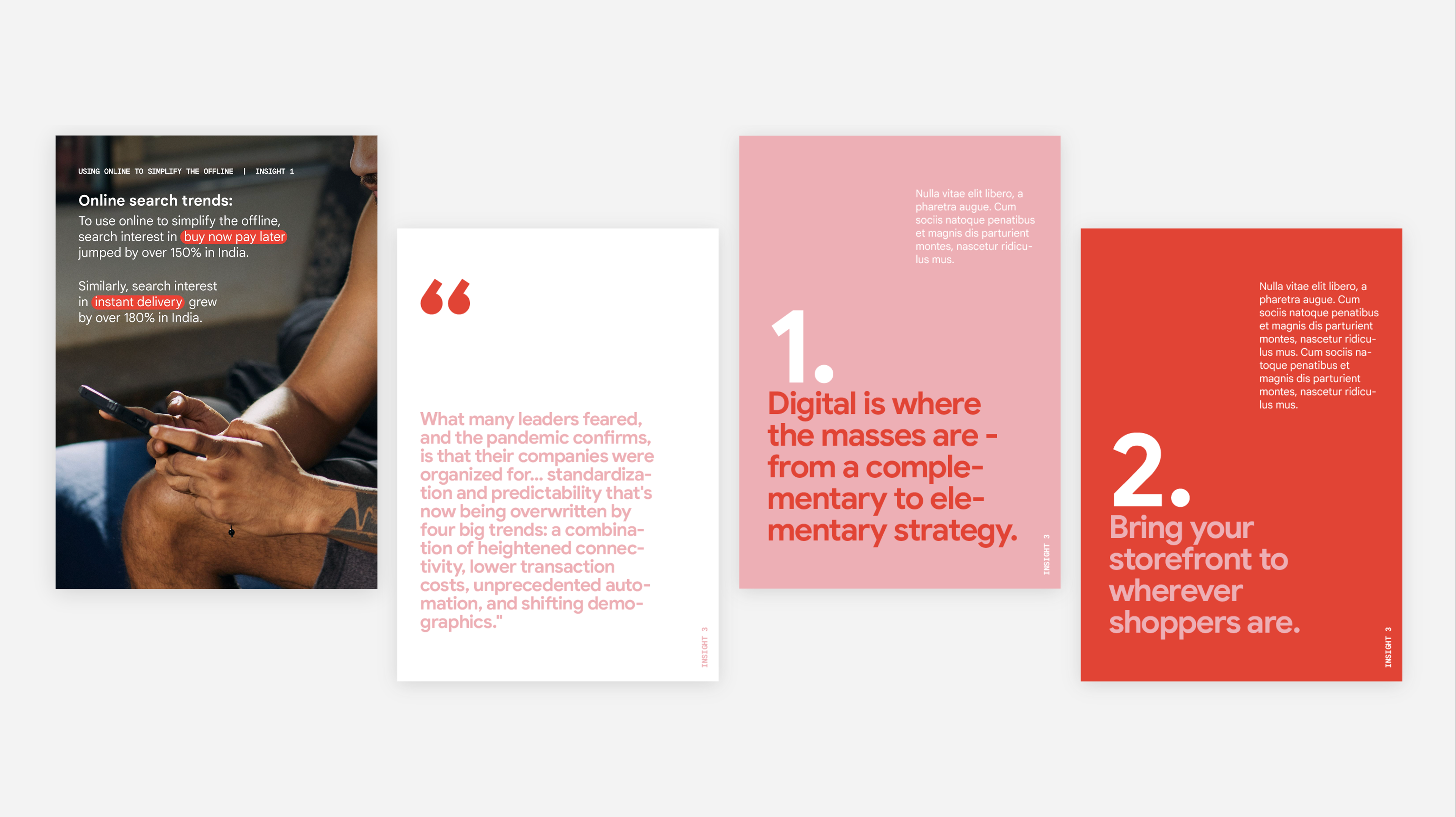 What do consumers really care about, and how are their buying habits changing? As marketers start to think about their strategies for the coming year, they turn to Google for insights on how to better connect with their customers. In 2022, this annual B2B trends report saw its biggest, most cohesive campaign yet. From an evolved brand identity to a new interactive platform, along with a full spectrum of locally tailored trend films, digital ad creatives, and social assets, it positioned Google as an innovative thought leader across 66 countries and 21 Think with Google sites in EMEA, AMER and APAC. Region-specific data supported impactful, inclusive storytelling that brought the global narrative to life through local stories and proof points. Role: Creative strategy lead & writer